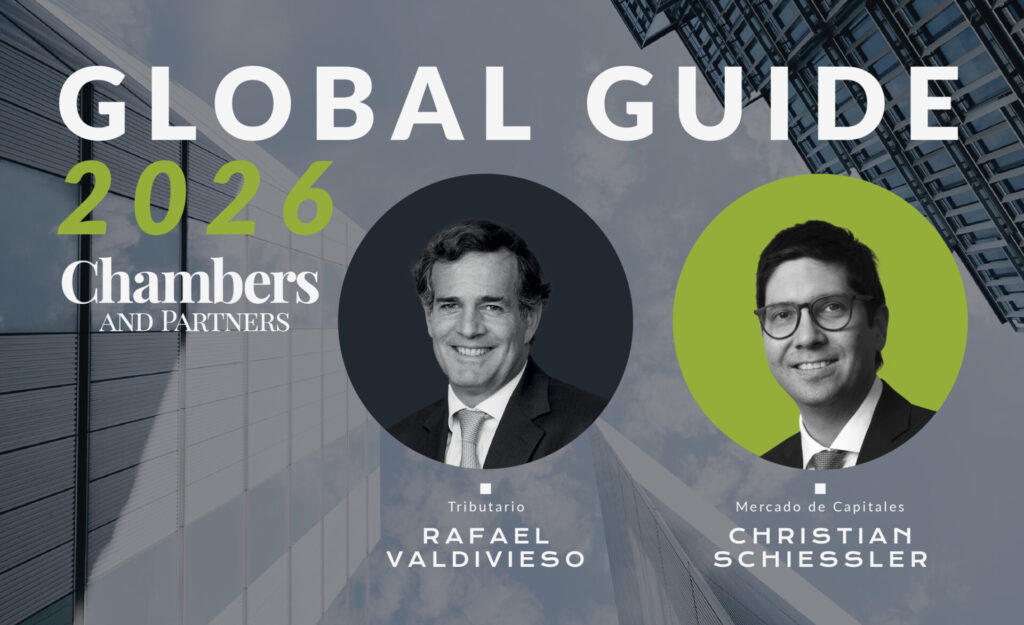En el reciente lanzamiento de la edición 2026 de Global Guide de Chambers and Partners, nuestros socios Rafael Valdivieso y Christian Schiessler, fueron nuevamente reconocidos en sus respectivas áreas: Tributario y Mercado de Capitales. Agradecemos el permanente respaldo de nuestros clientes y la valoración a nuestro trabajo. Estos reconocimientos refuerzan nuestra misión de entregar siempre