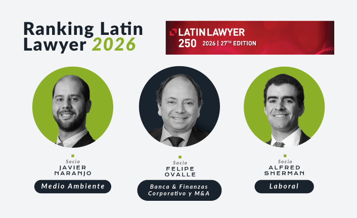 Nuevamente fuimos reconocidos en el ranking 2026 de Latin Lawyer 250, que destaca a los mejores estudios de abogados de la región. Nuestros socios Javier Naranjo, en Medio Ambiente; Alfred Sherman, en Derecho Laboral; y Felipe Ovalle en Corporativo y Financiamiento, resaltaron por su trabajo de excelencia y reconocido conocimiento y experiencia en sus respectivas áreas de