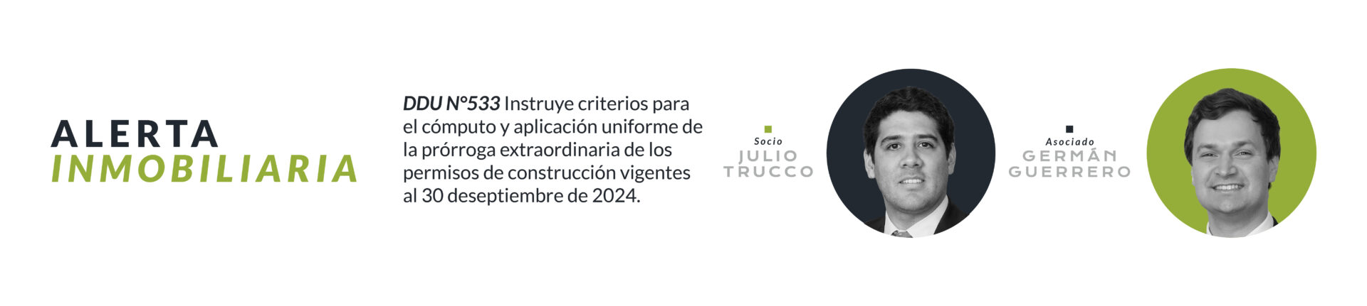 El pasado viernes 27 de febrero de 2026, la División de Desarrollo Urbano del Ministerio de Vivienda y Urbanismo emitió la DDU N°533, mediante la cual se imparten instrucciones para la aplicación uniforme de la prórroga extraordinaria de 18 meses aplicables a determinados permisos de construcción, establecida por el Decreto Supremo N°33 del Ministerio de Vivienda y Urbanismo de 2024, que incorporó un artículo transitorio a la Ordenanza General de Urbanismo y Construcciones (en adelante, la “OGUC”).